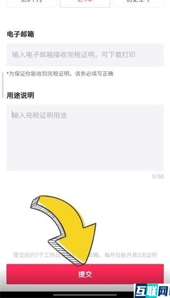 3. 选择开具证明的时间,输入电子邮箱和用途说明,再点击底部【提交】就可以了。