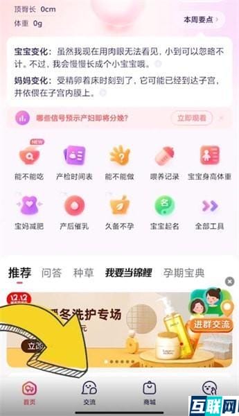 1. 首先打开宝宝树孕育,点击页面下方【交流】,