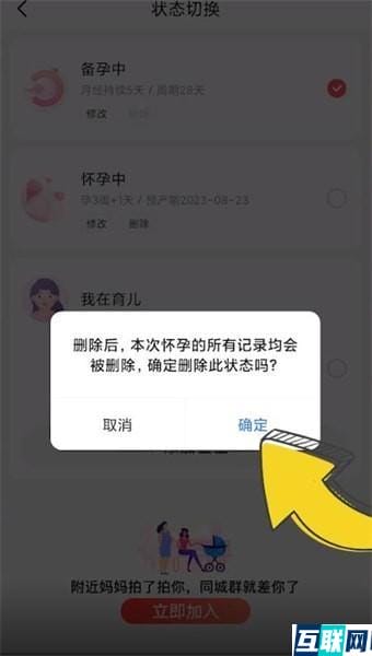 3. 再点击怀孕中下方的【删除】,点击【确定】就可以了。