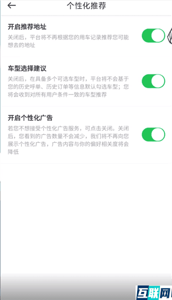 2. 点击页面左下角【设置】,选择【个性化推荐】进入,滑动按钮关闭【开启推荐地址】就可以了。