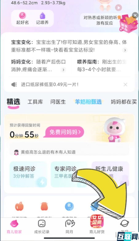 1. 首先打开妈妈网孕育,点击页面右下角【发现】,