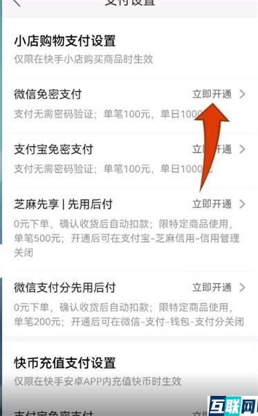 您的位置: 网站首页> 大家问> 当前文章 快手微信免密支付怎么开启 老董2023-10-20162围观,129赞 1. 首先打开快手,点击左上角的功能按钮; 2. 在侧边栏点击【我的钱包】,在我的钱包界面找到【支付设置】, 3. 点击【微信免密支付】后面的【立即开通】就可以了。 很赞哦! python编程网提示:转载请注明来源www.python66.com。有宝贵意见可添加站长微信(底部),获取技术资料请到公众号(底部)。同行交流请加群 上一篇:快手怎么用粉条推广 下一篇:快手小店怎么卖货 相关文章 vivo屏幕失灵怎么强制关机 实用工具箱如何进行图片信息修改 航旅纵横客服在哪里找 苹果手机电池容量怎么看 如何申请一码通 快捷指令怎么设置 懂球帝怎么设置挂件 快影不透明度怎么调 文章评论 快手微信免密支付怎么开启文章写得不错,值得赞赏 最新文章 浏览器指纹大全 Jenkins安全最佳实践包括哪些关键方面? Jenkins中如何实现代码部署的自动化? 在Jenkins中如何配置和使用构建流水线? 如何在Jenkins中管理和处理构建失败? 如何在Jenkins中实现构建任务的自动化触发? 推荐阅读 DolphinScheduler的机器学习任务调度有哪些功能和优 一嗨租车怎么租车 Java中如何正确使用wait()和notify()方法? 红米手机文件管理在哪里 如何在Java程序中预防死锁 标签云 通俗深刻 小白福利 互联网随笔 编程技术博客 猜你喜欢 vivo屏幕失灵怎么强制关机 实用工具箱如何进行图片信息修改 Android中SQLite数据库优化策略有哪些? Golang中如何实现函数的可变参数? Spring Cloud如何支持国际化和本地化? 站点信息 网站程序:Laravel 客服微信:a772483200