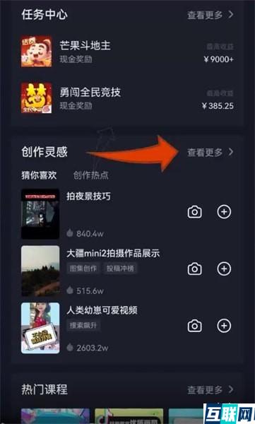 2. 在功能界面点击【创作者服务中心】,点击【创作灵感】下面的【查看更多】,