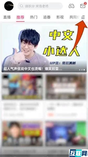 1. 首先打开哔哩哔哩,点击右上角的三条横线,进入分区界面,