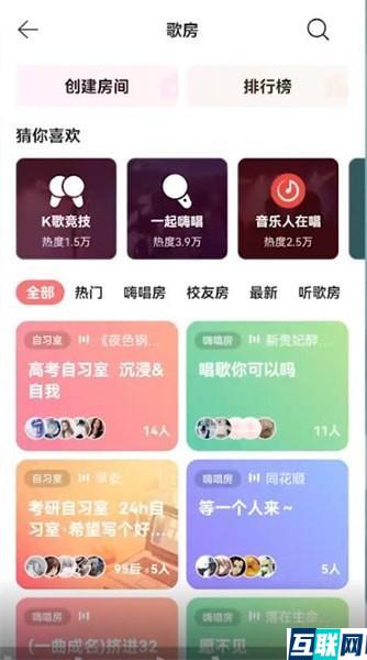 2. 在发现界面点击【歌房】。在歌房界面,选择你要进入的直播间,