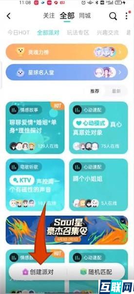 2. 点击【群聊派对】。在群聊派对界面点击【创建派对】,