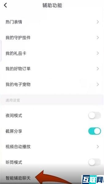 2. 在设置界面,点击【辅助功能】,然后打开【智能辅助聊天】就可以了。