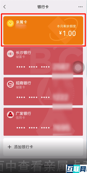 3. 最后点击【银行卡】选项,即可在页面中查看亲属卡剩余额度了。