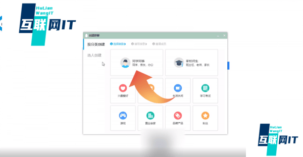2. 2.点击群聊上的加号图标选择创建群聊,选择需要创建的类别,