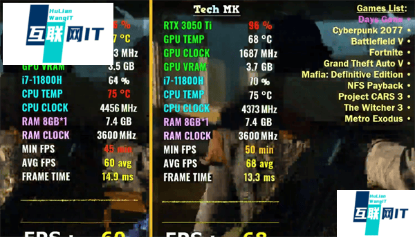 3050ti和3050性能差多少