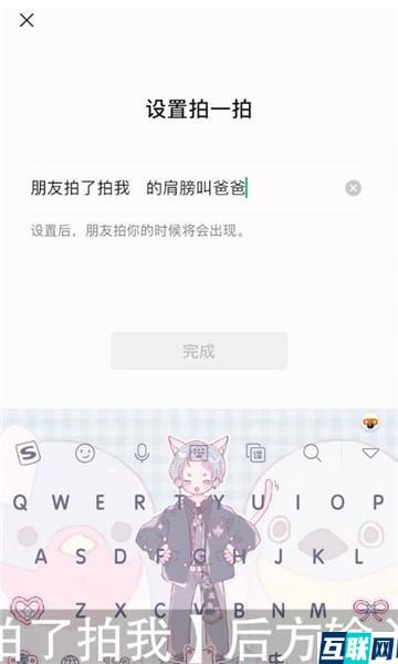 3. 输入你希望好友在对你使用拍一拍功能时要显示的搞笑文案,最后点击【完成】按钮即可。
