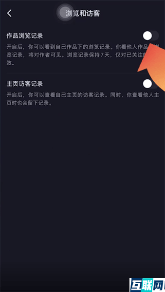 3. 3.接下来点击浏览和访客功能,滑动按钮即可成功开启作品浏览记录功能了。