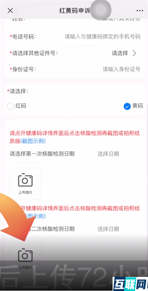 4. 然后上传72小时内做过的二次核酸检测报告截图,上传完毕后点击提交即可。
