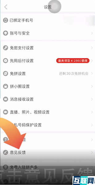 2. 2.这时点击个人中心的设置功能,再点击意见反馈选项,