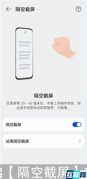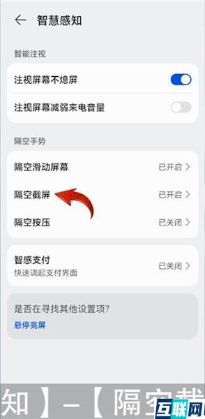 2. 接着在【隔空手势】栏下方点击【隔空截屏】选项,将【隔空截屏】功能右侧的开关打开,