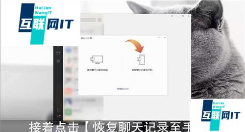 2. 然后点击左下角的【更多】图标,此时在展开的选项栏点击【备份与恢复】,接着点击页面右侧的【恢复聊天记录至手机】图标,