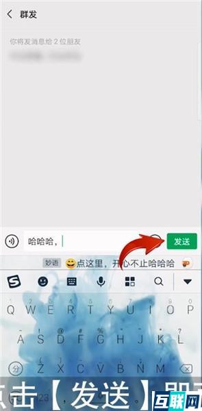 5. 选择收信人后点击【下一步】按钮,再输入要群发的消息,点击【发送】按钮即可。