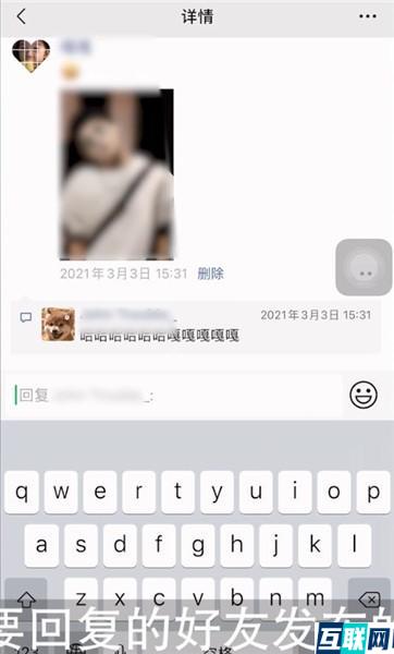 2. 接着点击要回复的那条朋友圈,点击右下角按钮,进入朋友圈的详情页面,