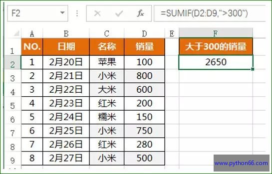 案例3:计算大于300的销量
