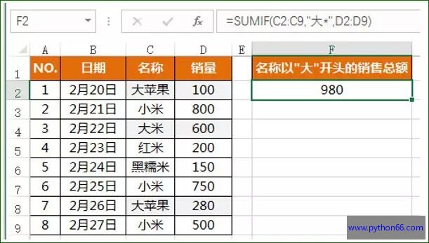 案例9:计算名称以”大”开头的销售额