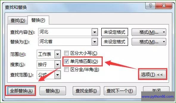 看表格中的E列,又有“河北省”又有“河北”参差不齐, 我们将其统一为“河北省”,如果就是简单的在查找值输入“河北”,替换值输入“河北省”,则原来为“河北省”的会变为“河北省省”的笑话。