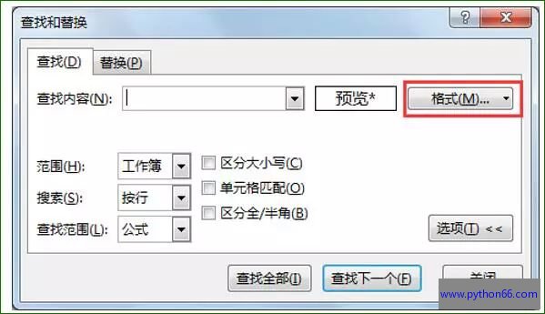 快捷键ctrl+F→选择“格式”。