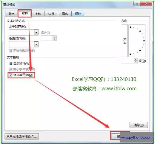 出现新的对话框,选择”对齐”→将”合并单元格”打钩→单击”确定”→”全部查找”,就可以找到那些合并单元格了。