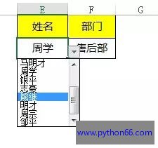 然后,如果您想E2单元格的姓名作为动态显示的,就用数据有效性做一个下拉列表,选择不同的姓名,部门就变为姓名相对应的其他部门。