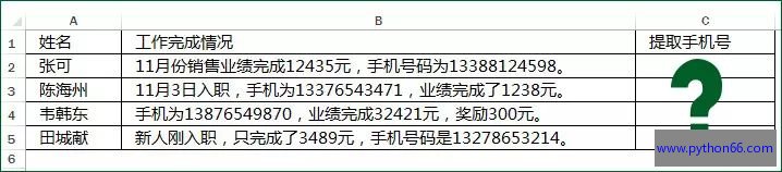 部落窝excel:这是一个办公小蜜蜜做的Excel表格,一起来看看。小蜜蜜询问如何把B列录制的手机号码提取出来放在C列?