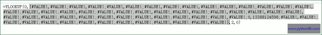 VLOOKUP第四参数为0,采用精确匹配的方式,在以上内存数组的第一列查询首个0出现的位置,并且返回相对应的内存数组第二列的结果,于是就得到了手机号码。