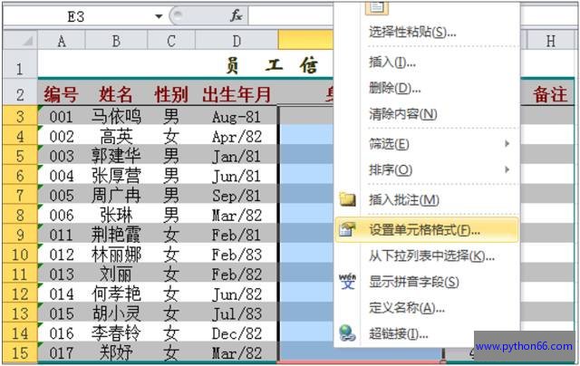 选中要输入身份证号的单元格,右击鼠标,选择“设置单元格格式”;在“数字”选项卡的“分类”列表中选择“自定义”选项。在“类型”文本框中输入“@”,单击“确定”按钮,再输入身份证号码即可。