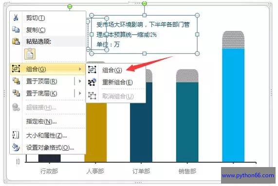 9.插入一根竖线及两个文本框,文本框内写上对应内容。按住CTRL键同时选中直线,文本框与图表右键组合,组合后它们就成一个整体了。