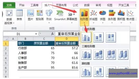 1. 选中B2:D6区域【插入】-【二维柱形图】-【簇状柱形图】,或者选中区域直接按ALT+F1快速插入图表