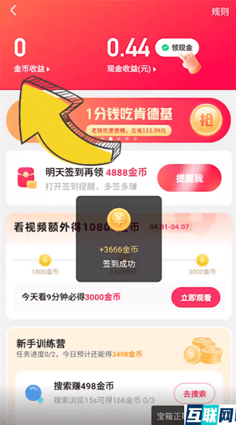 2. 点击【金币收益】,点击【领现金】,勾选兑换提现的金额,
