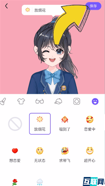 2. 自由搭配人物的外型、背景、心情,点击右上角【保存】就可以了。