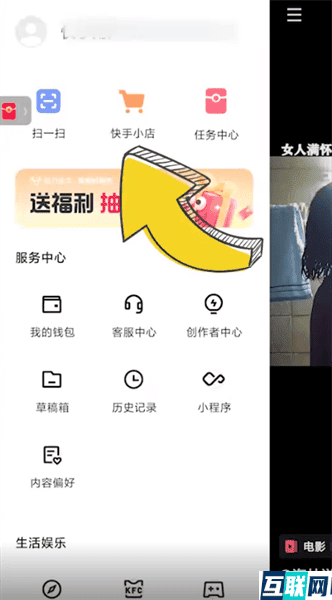 1. 首先进入快手,点击页面左上角三条横线,点击【快手小店】,