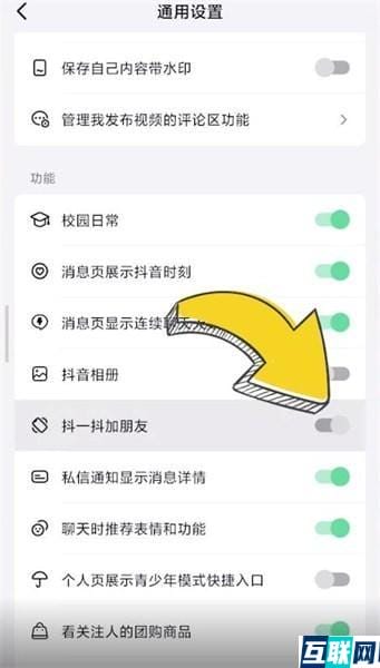 3. 点击【通用设置】,滑动按钮关闭【抖一抖加朋友】就可以了。