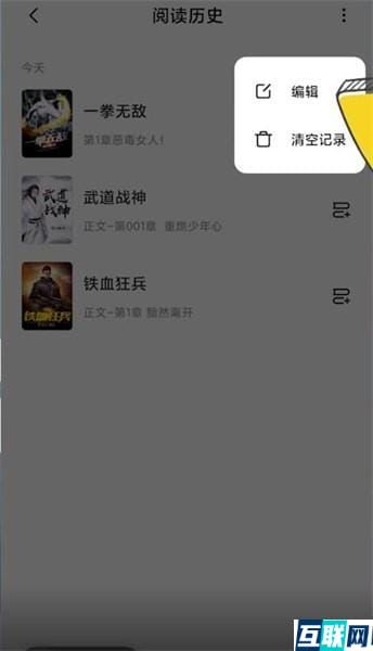 2. 点击【阅读记录】,点击页面右上角三点符号,选择【编辑】,