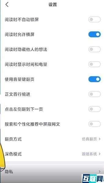 2. 点击页面右上角设置图标进入,点击【隐私】,