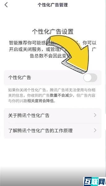 3. 点击【个性化广告管理】,滑动按钮关闭【个性化广告】就可以了。