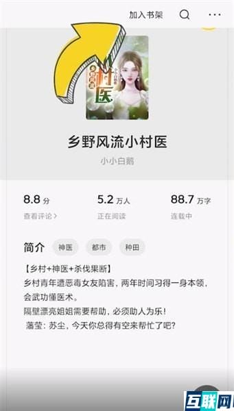 2. 点击小说进入,点击页面中间位置,再点击上方【加入书架】就可以了。