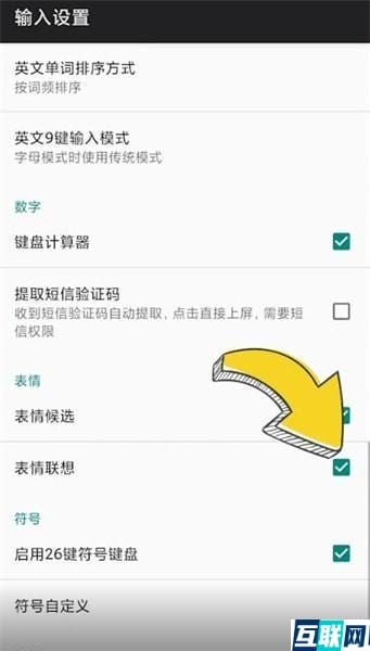 2. 点击上方设置图标,选择【输入设置】,点击【表情联想】就可以开启了。