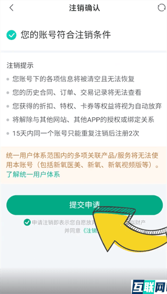 3. 勾选同意申请注销通知,再点击【提交申请】就可以了。