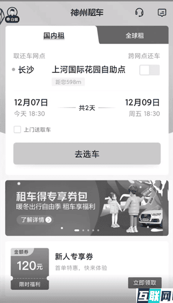 1. 首先打开神州租车,点击页面左上角个人头像进入,