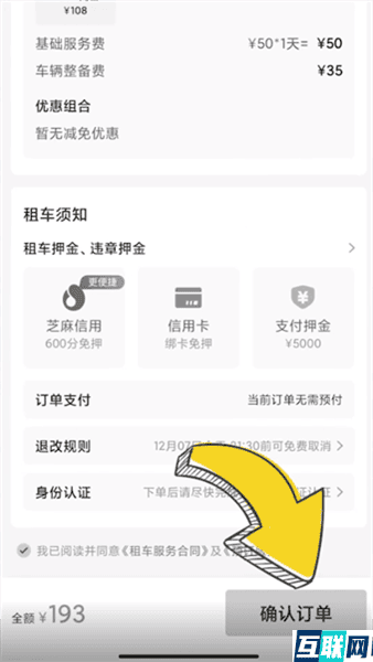 4. 选择租车的服务点,选择租车的车辆,勾选同意协议,再点击页面右下角【确认订单】就可以了。