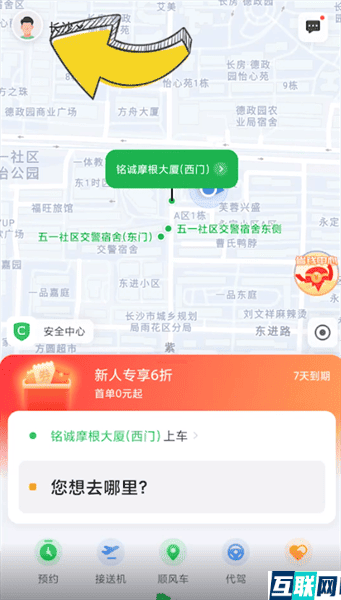 1. 首先打开曹操出行,点击页面左上角个人头像,