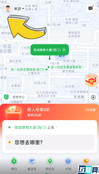 1. 首先打开曹操出行,点击页面左上角个人头像,