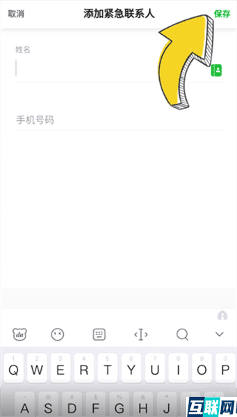 3. 点击下方【添加紧急联系人】,输入姓名和手机号码,再点击页面右上角【保存】就可以了。