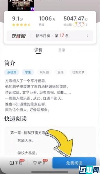 2. 点击页面右下角【免费阅读】,点击页面中间位置,