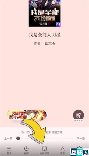2. 点击页面右下角【免费阅读】,点击页面中间位置,再点击【自动翻页】就可以了。